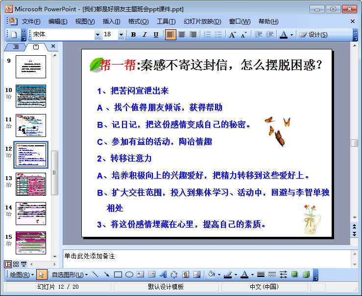 不管你我来自何处,我们的友谊永远不变,因为我们是好朋友,你快乐我就快乐,你幸福了我就放心了——停止矫情,为大家介绍一下这份最新免费版我们都是好朋友主题班会ppt课件,该ppt共20页,内容包括“友情是和谐的,来不得冲突——同学、朋友之间的关系应当和谐,但产生了冲突该怎么办 ? ”等问题探讨,欢迎有需要的朋友有们前来下载查阅!