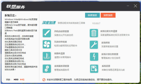 相信大家在用联想电脑的时候总会出现不少的问题,当工作人员无法上门维护的时候,你们就可以用上联想内部专用8s优化工具,这个可是联想内部人员专用的一款优化软件,能够帮助你的电脑更加顺畅的进行运行!