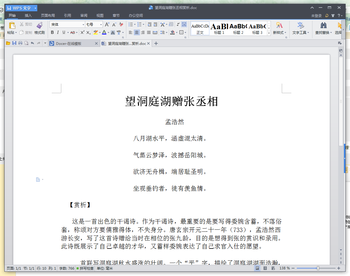 望洞庭湖赠张丞相全面赏析(免费版)预览