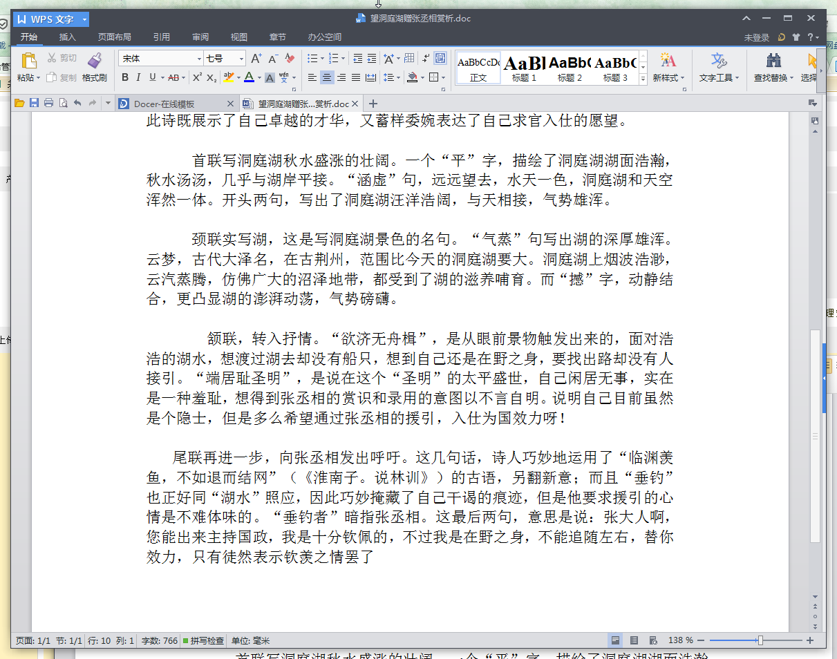 望洞庭湖赠张丞相全面赏析(免费版)内容节选