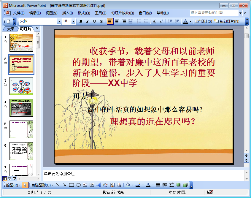 还记得爸爸妈妈一清早用自行车送你到学校大门口,傍晚又等候在校门外的情景吗?那是小学。今天,我们再也不愿意接受爸爸妈妈接送上学的要求了。这是一个从依赖到独立的角色转换的过程。角色转换过程远不止接送上学一件事,你需要独立的安排时间,独立的处理人际关系,独立的思考问题…..没有一个学生会承认他畏惧独立,但是真正实现独立,决不是一件轻而易举的事,而是一个艰苦、漫长、曲折的过程。