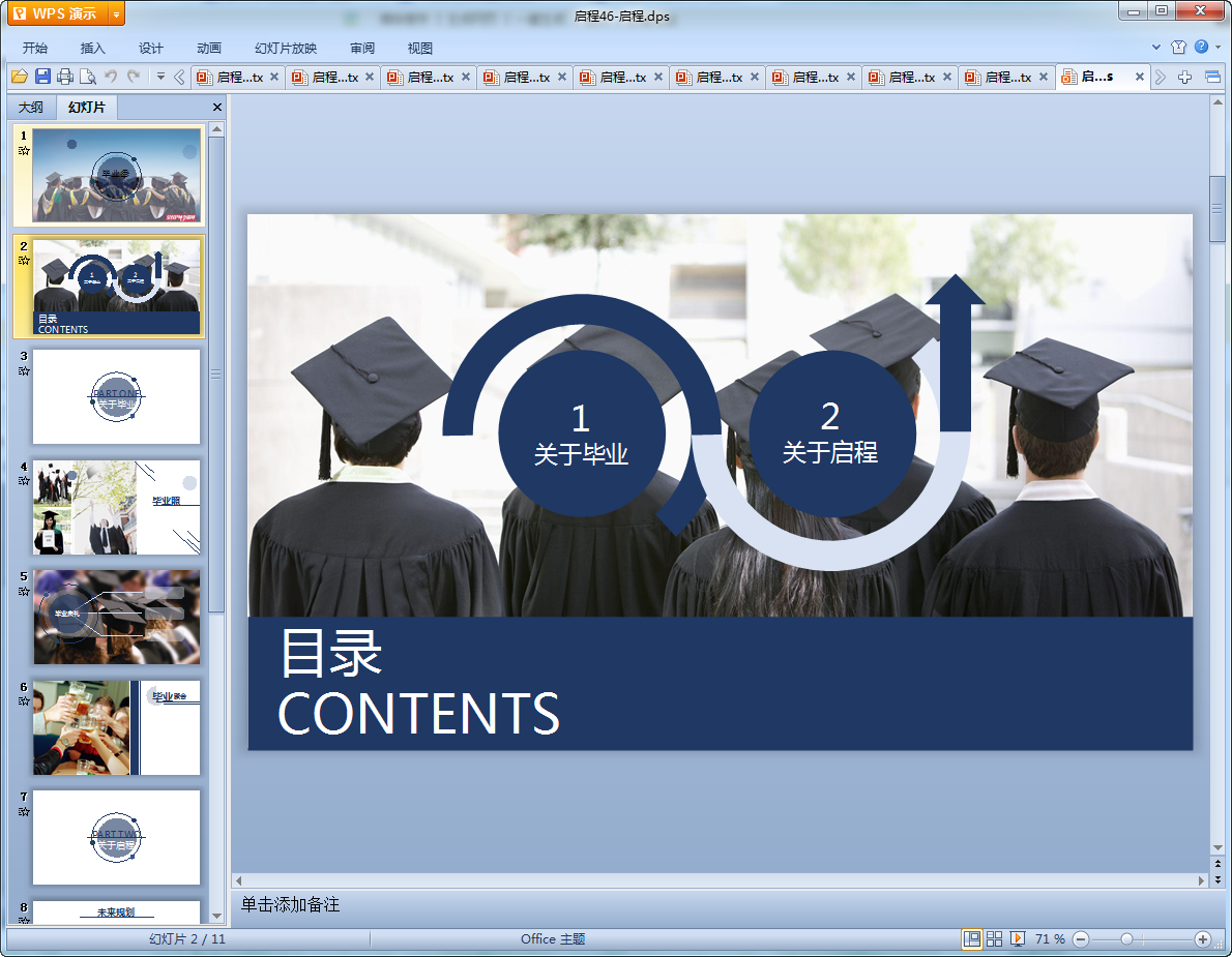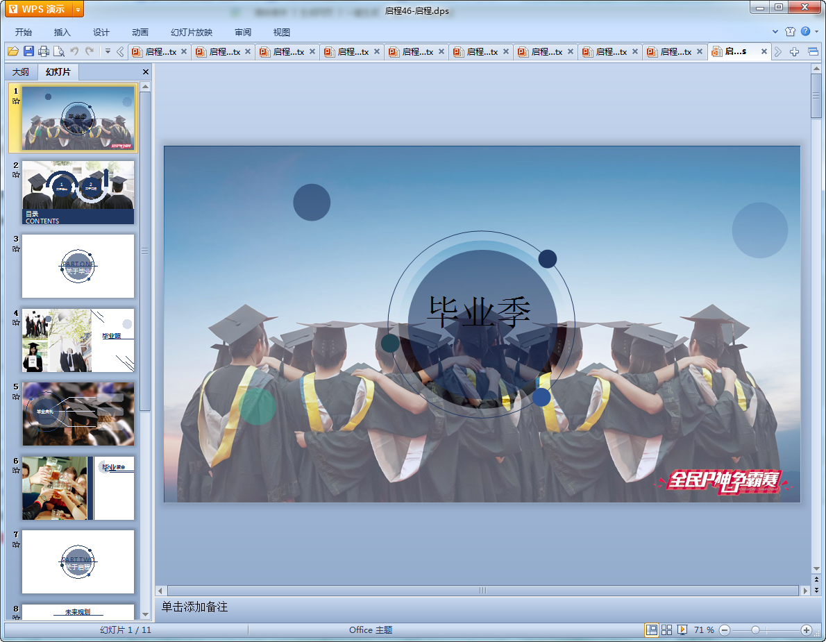大学毕业季是一个忧伤的季节,它带走了所有人的大学生涯,同学们进入到一个新的启程行的起点!这里给大家带来了一篇大学毕业季ppt模板(免费版),该模版制作十分精美做工非常精细深受学生们的喜爱,有喜欢的朋友们可以来下载使用!