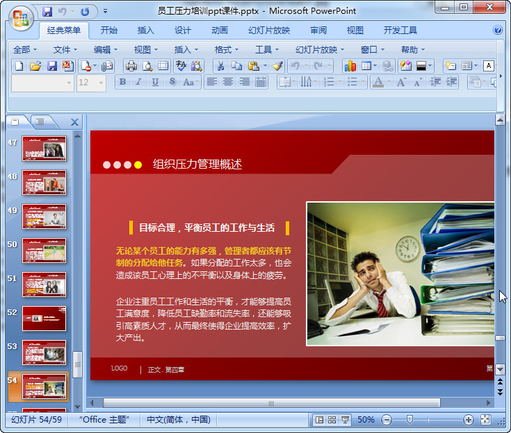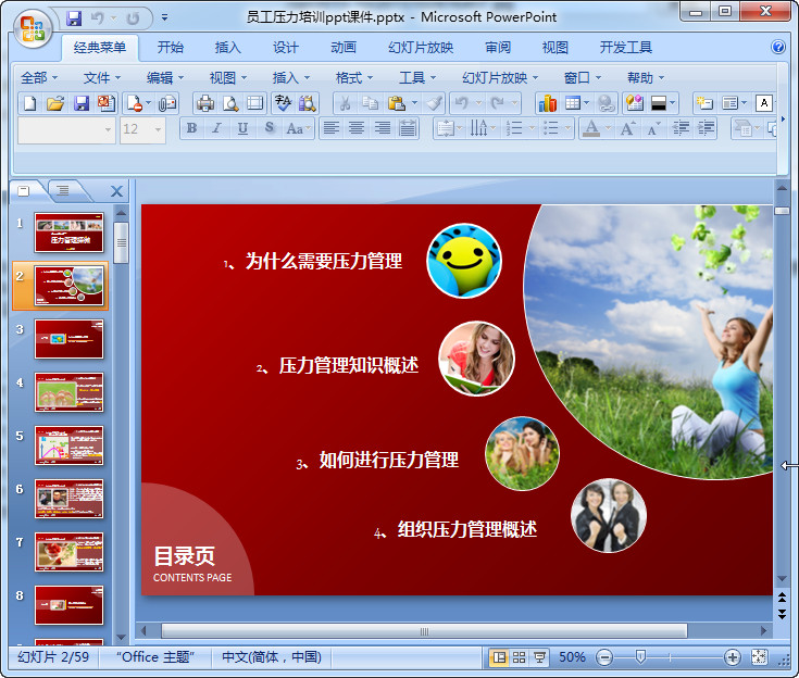 员工压力管理培训ppt课件也是员工心态培训ppt,毕竟工作中的压力还是有的,那么就要我们调整好心态,去面对压力、缓解压力,让自己活的更加轻松。欢迎有需要的朋友前来东坡下载。