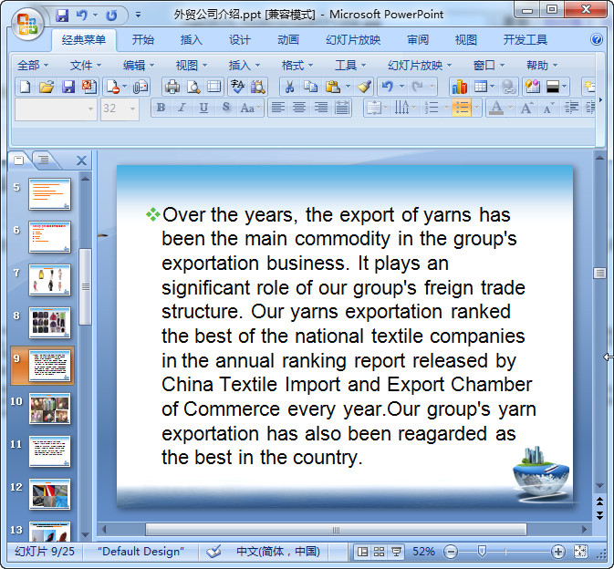什么是外贸公司,大家知道吗?当你想要进入外贸公司工作的时候,不妨多了解一下什么是外贸公司。这份外贸公司介绍ppt也可以作为一份公司的简介哦。非常的简洁、大气。欢迎有需要的朋友前来东坡下载使用。