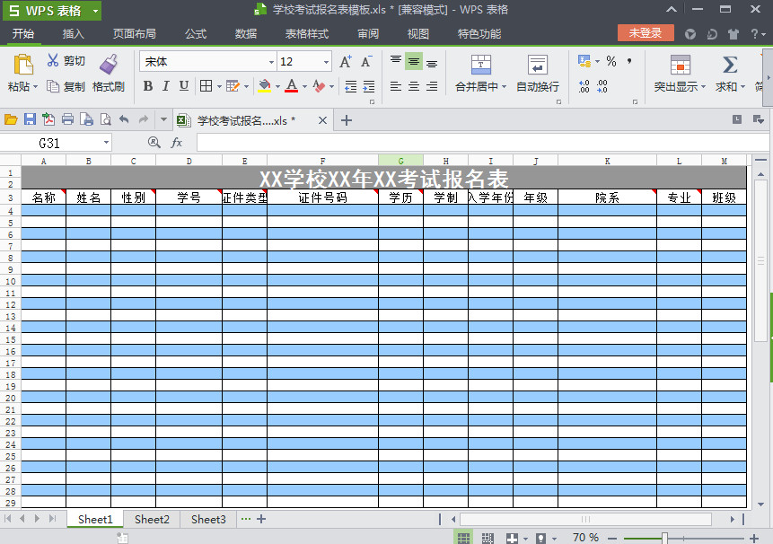 像学校招生考试啊、考一些资格证书啊这些东西的话,就需要一个报名表吧。那么这份学校考试报名表样本就包含了姓名、性别、学号、证件类型、证件号码、学历、入学年份、年纪、院系等等方面。欢迎有需要的朋友前来东坡下载使用。