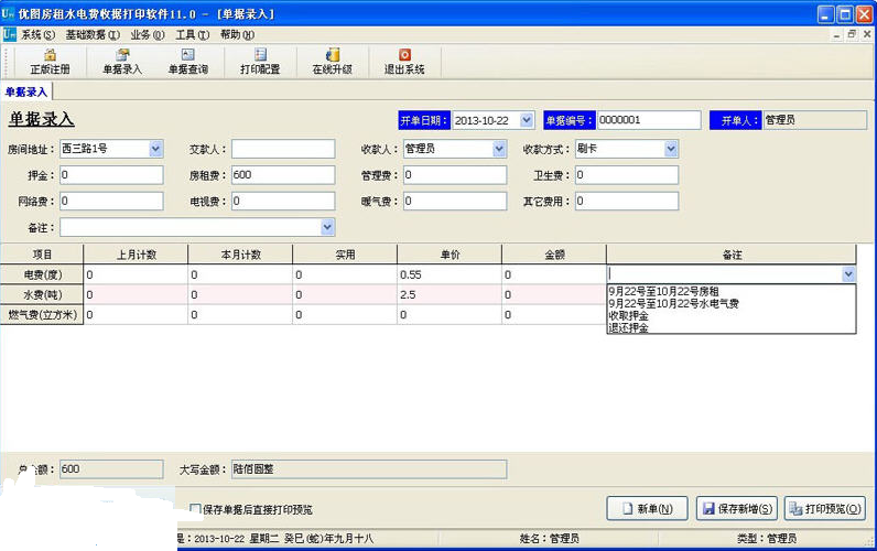 3、支持即输即打功能,即不用先建好出租房资料即可直接开单,系统自动帮您保存;