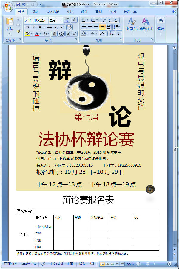 辩论赛报名书