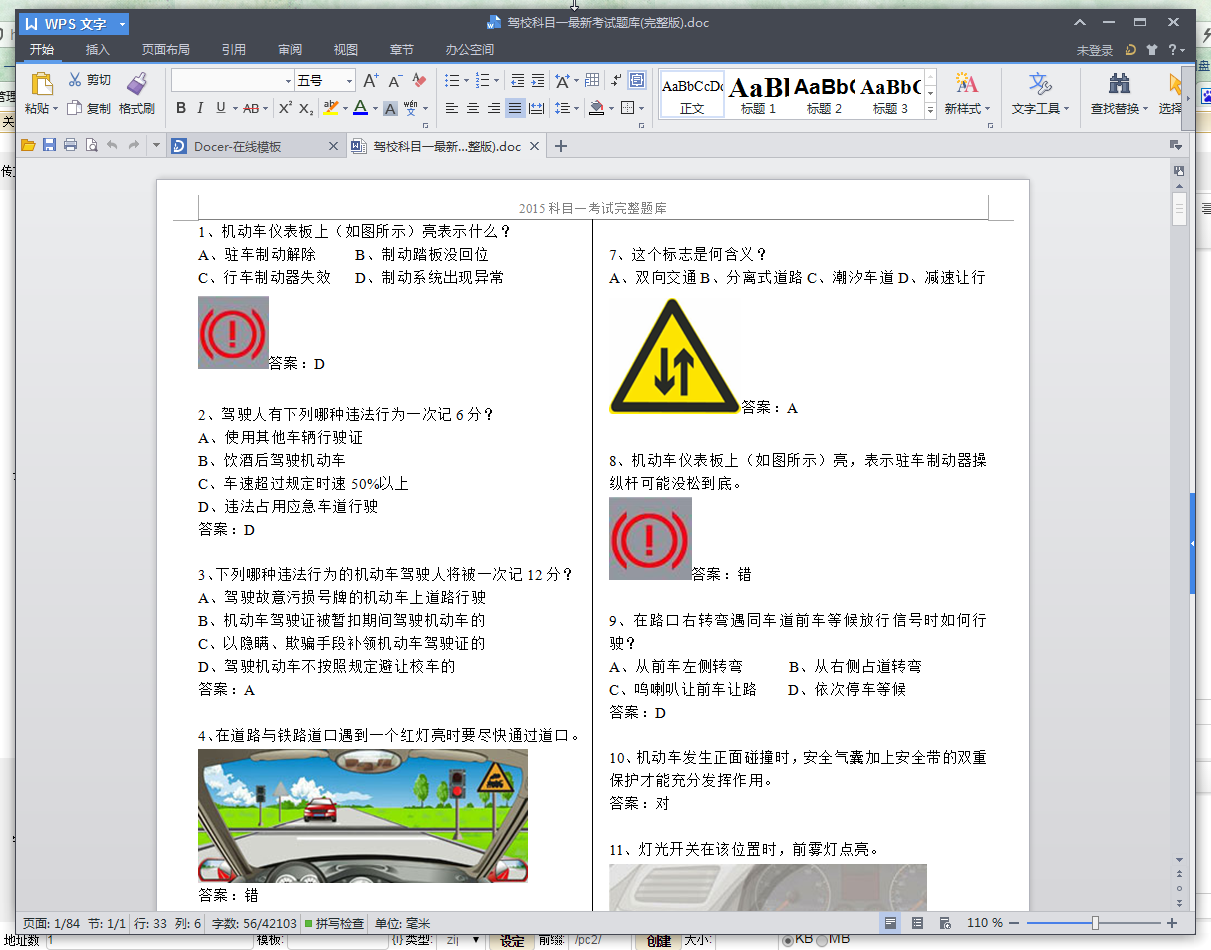 这是由东坡下载编辑整理的最新驾照考试科目一完整题库,该word内容非常齐全题目归类也很清晰,简直是复习科目一的必备武器,不喜欢对面手机做题的朋友们可以选择下载这篇文档,有兴趣的快来下载这篇2015科目一考试完整题库(免费版)吧!