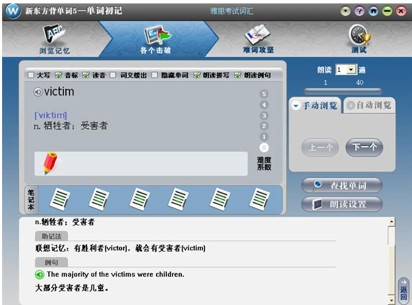 对于新东方估计不少人都会有所了解,那么现在给你们推荐是新东方背单词5白金版,这个是著名单词记忆软件。让大家不需要进补习班,也能够在家里有有效的进行学习!