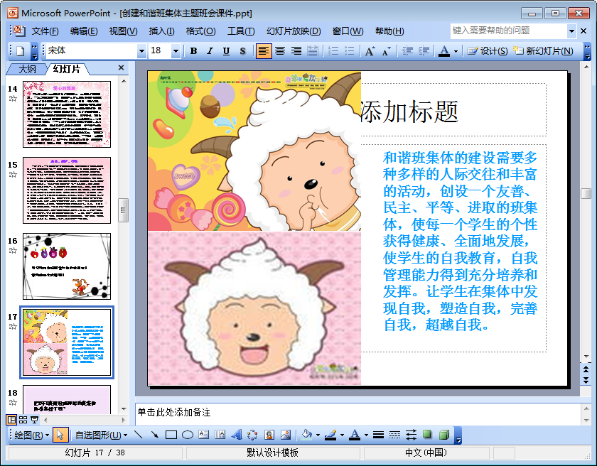 “有时总觉得班里的气氛怪怪的,可是也不知具体有什么原因?其实不太想过于了解一些细枝末节的事情,但是,很希望每一个个人,在班里的时候快乐……”——这是一个学生对于自己班集体的一些感想。那么作为老师,应该如何与学生们一起建立一个团结互助、健康和谐的班级体呢?大家不妨借助这份创建和谐班集体主题班会课件ppt一起来探讨一下吧!