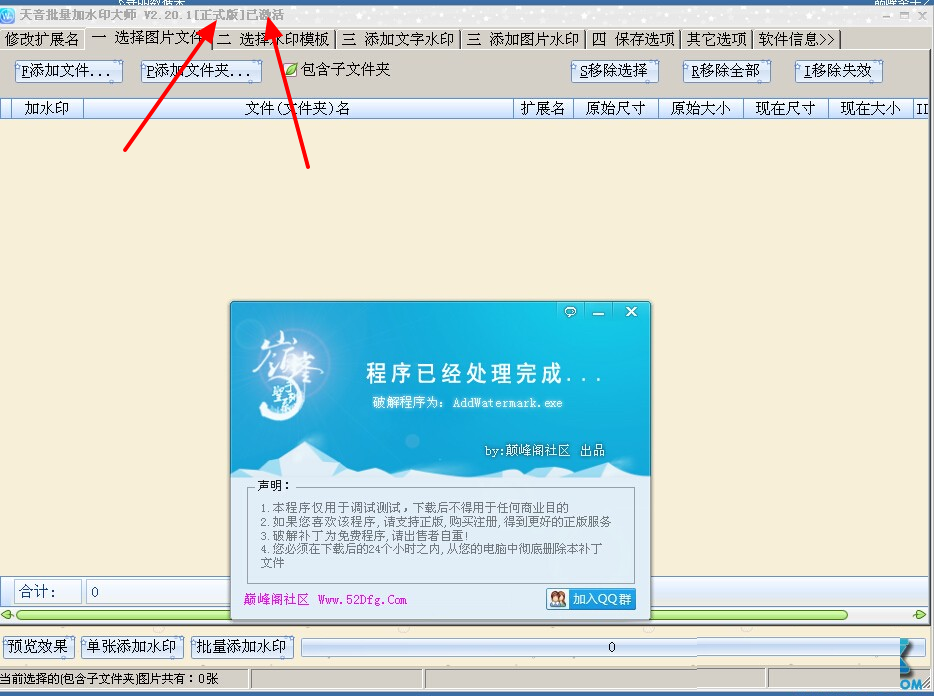 —>点击“批量添加水印”,可对“图片文件”里面已经选中的所有图片加水印并输出。