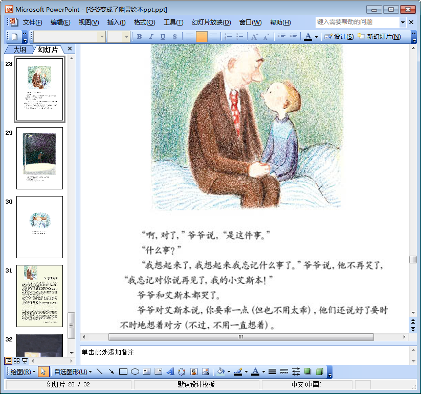 小编是一大早看到这个爷爷变成了幽灵绘本的,哭的稀里哗啦的,把隔壁桌的同事都给吓到了——鉴于有朋友需要这份绘本作为课件使用,小编还是抹干了泪水,为大家整理带来了这份清晰完整版的爷爷变成了幽灵绘本ppt,绘本是很好的绘本,ppt也是很好的ppt素材,欢迎有需要的朋友们前来东坡下载!