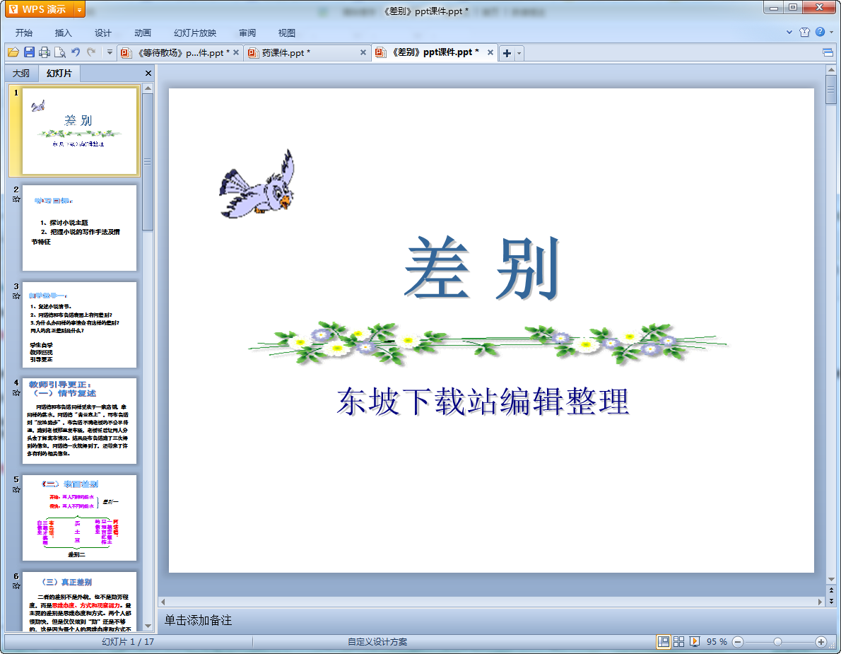 这是由东坡下载站编辑整理的差别教学课件,这是十分具有教育意义的一篇课文,该课件共有17页制作简洁对课文中的知识点讲解清楚,有需要这篇课文课件的老师们可以来东坡看看,我们为大家提供免费的下载服务!
