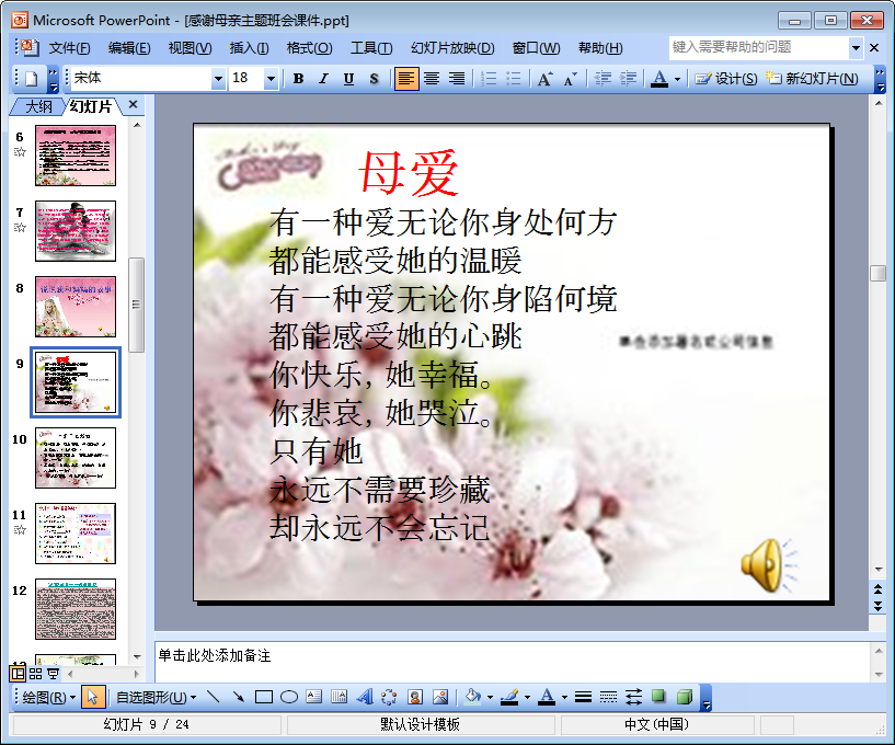 母爱是伟大的,也是无私的,它沉浸于万物之中,充盈于天地之间。有了母爱,才有了生命的开始;有了母爱,才有了历史的延续;有了母爱,才有了理性的萌动;有了母爱,才有了人性的回归。