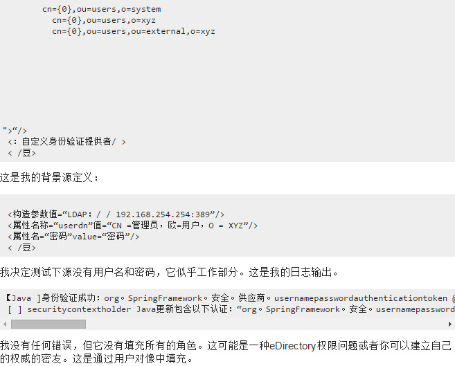这是一个bindauthenticator和自定义authoritiespopulator设置示例。