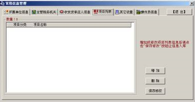点击“增加”按钮可以增加一条记录,选择项目类别(项目类别分为货物名称和其它项目两种,因为在开具发票的时候,有运输项目费用和其它项目费用两种),输入项目名称,输入完毕后,点击“保存修改”按钮保存增加的记录。
