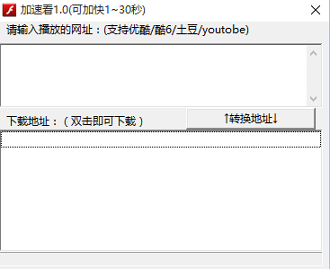 加速看视频用于下载优酷、土豆、酷6而省去了下载客户端的麻烦。短小精悍可以省去广告的时间(一般30-50秒)这里只需要2秒复制地址、1秒粘贴、2秒转换、即可立即播放,有需要的赶紧来下载使用吧。