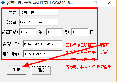 软件资格证书生成器是一款简易小巧的证书生成工具。能够生成各类装逼使用的证书,以假乱真,本程序仅供装逼和演示,任何法律责任与本站无关,源码直接运行可以打开,编辑模式运行,截图即可装逼!有需要的赶紧来下载使用吧。