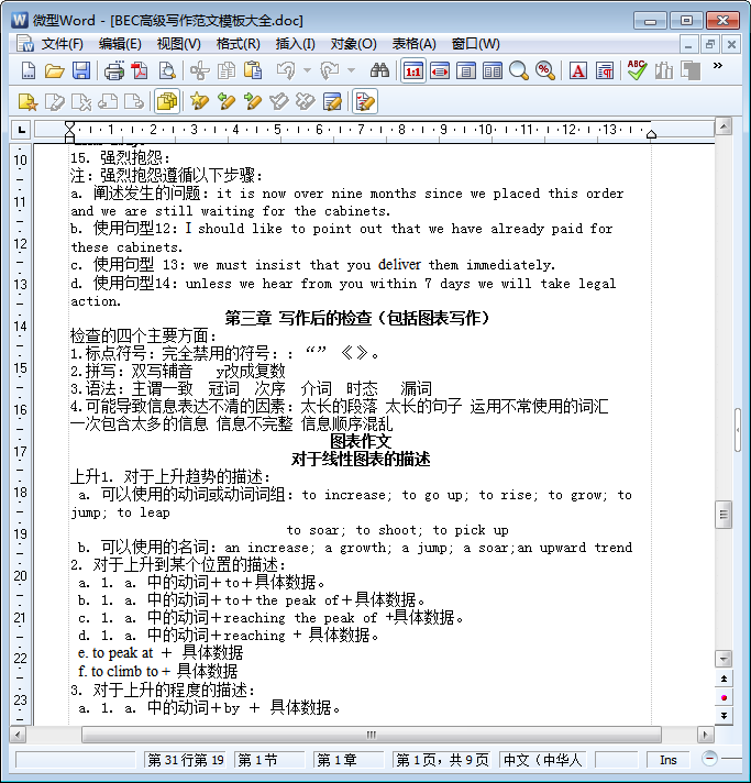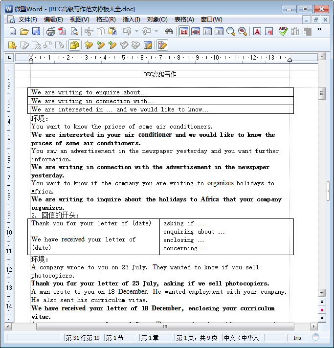 如果说商务英语考试BEC高级口语素材能让你掌握一口标准流利的口语以及清晰的逻辑思维,顺畅干净的谈吐表达和互动协调的交际能力的话,那么这份doc格式word版BEC高级写作范文模板大全则能让你写出一手“好文”,下文是该bec写作材料的内容摘选,需要查阅该BEC高级写作范文模板大全全部内容的朋友只需点击本文相应的下载地址进行下载即可!