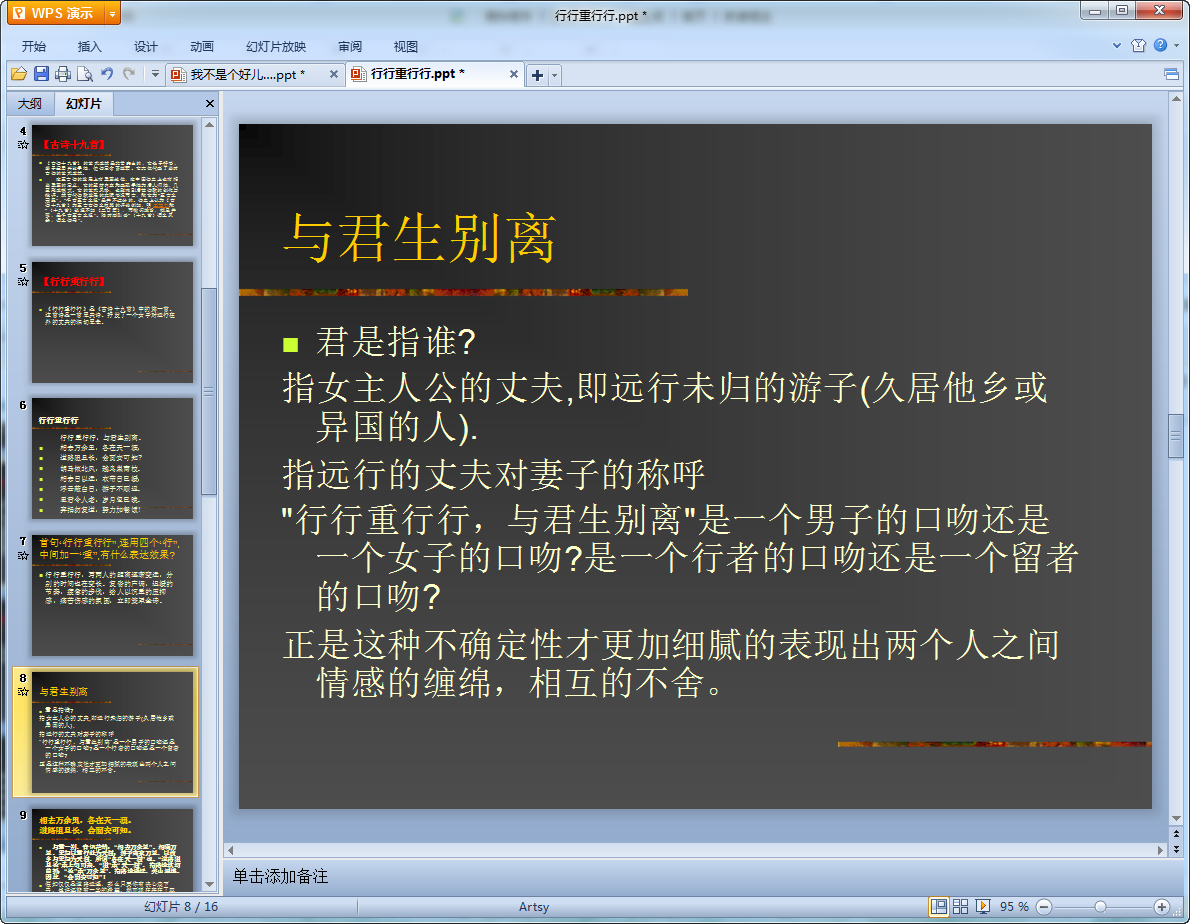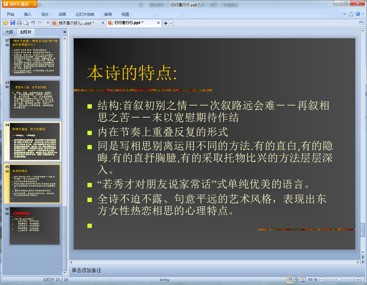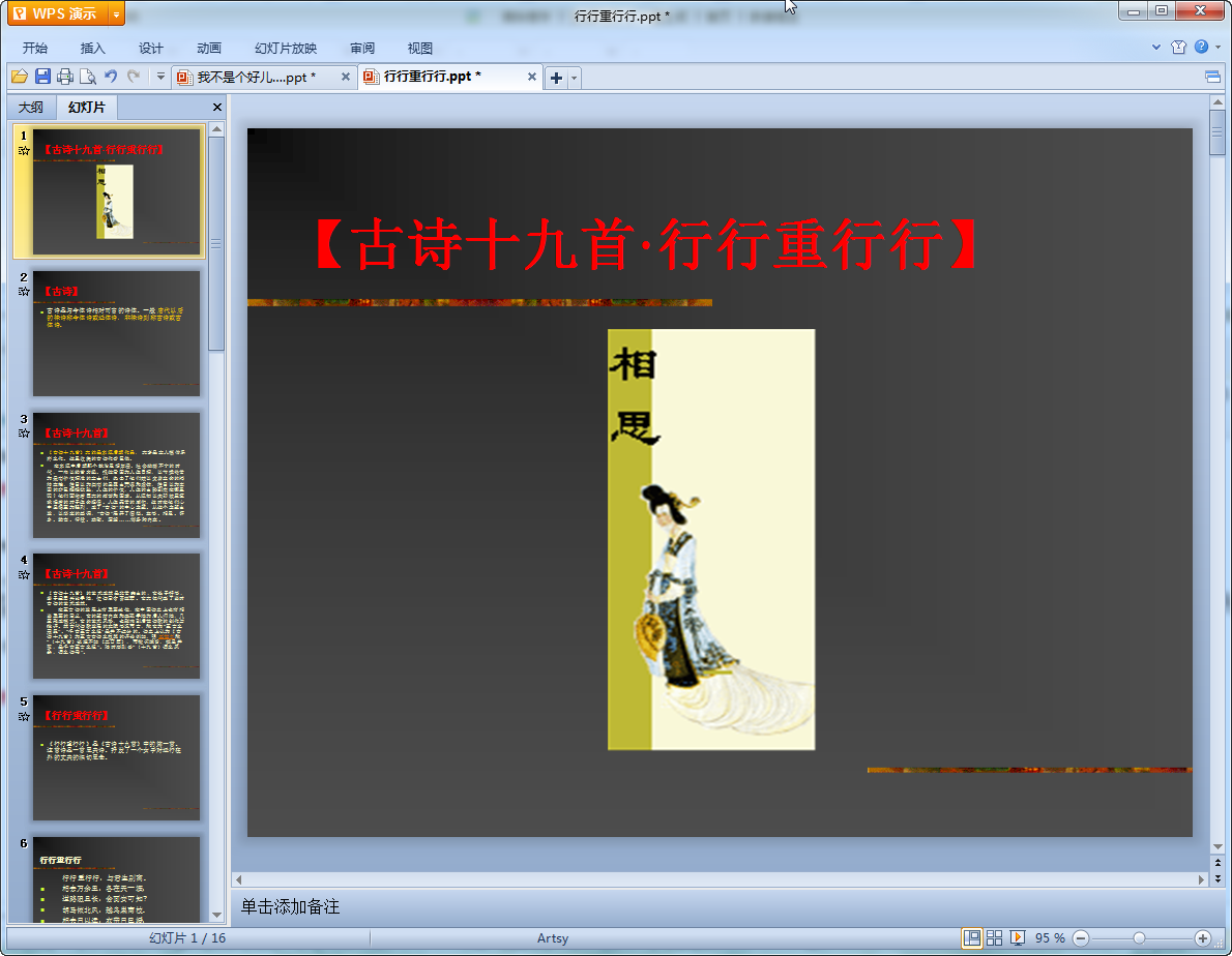 这是由东坡下载站编辑整理的行行重行行教学课件,该课件共有16页内容介绍的比较丰富对课文中的知识点讲解比较详细,有需要的朋友们可以来看看,我们为大家提供了免费的下载地址!不会让大家失望!