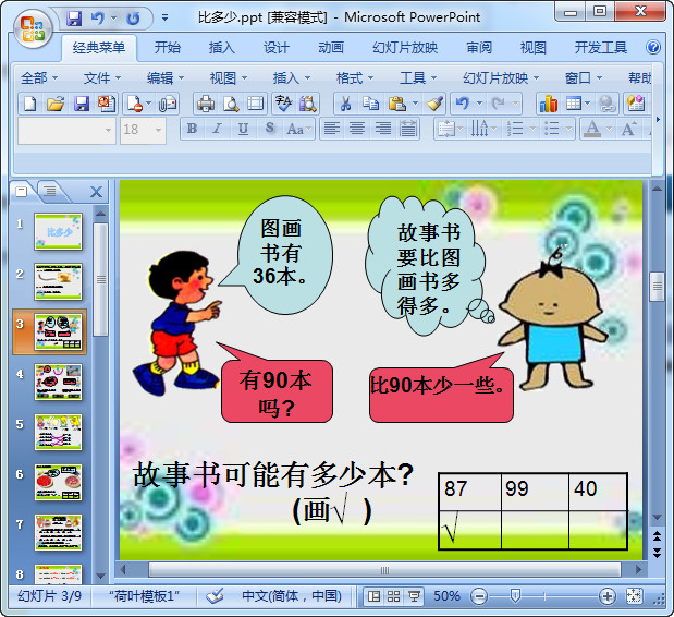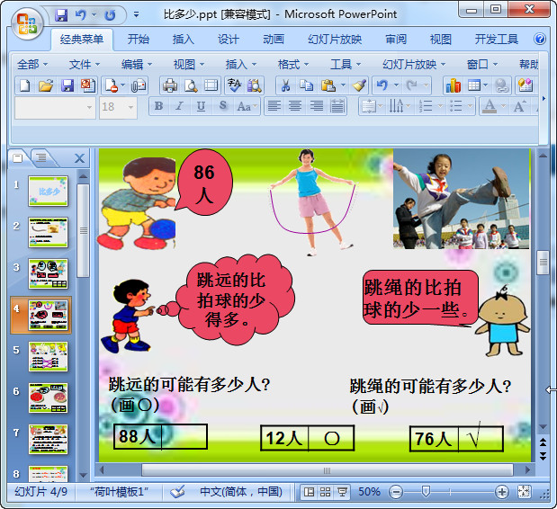 比多少ppt课件除了是幼儿园中班的课件以外,还是人教版小学一年级数学课件,十分的精彩,充满了特色,可以说的上是趣味数学了呢,欢迎有需要的朋友前来东坡下载使用。
