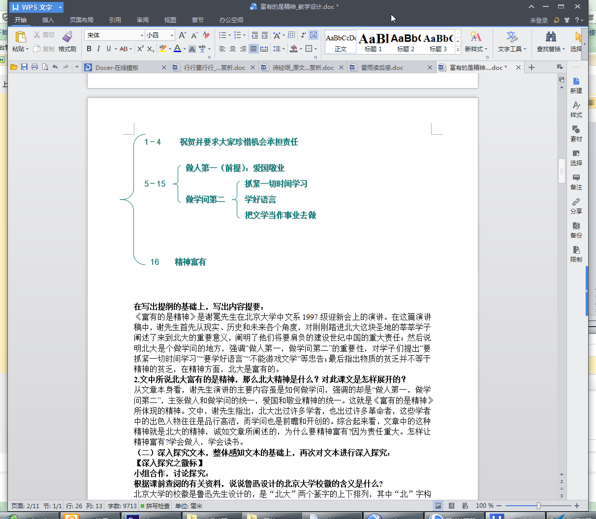 1、编写内容提要,理解北大精神。