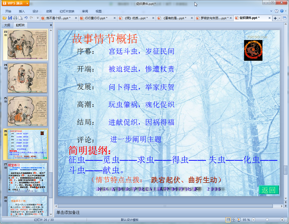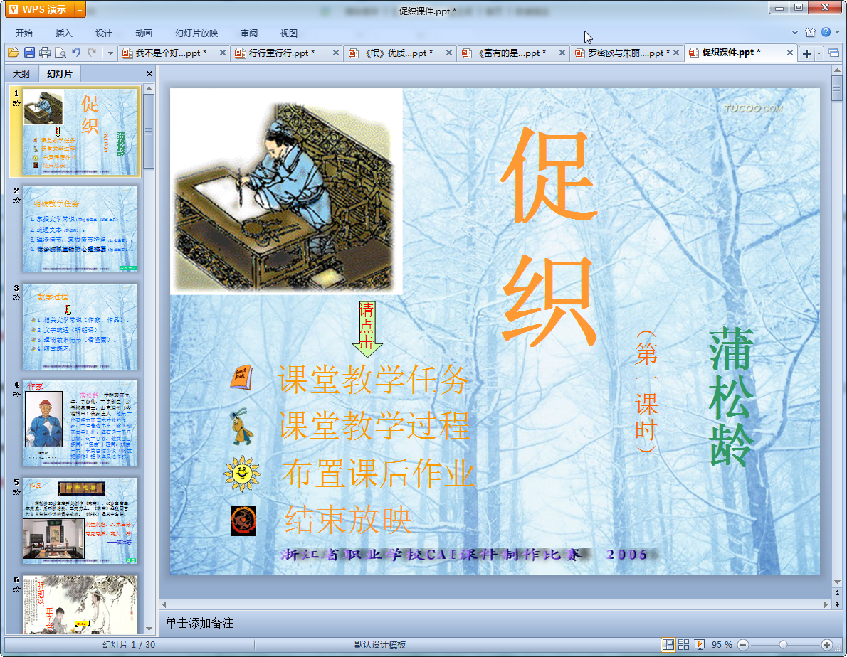 这是鲁教版高一语文促织教学课件,该课件共有30页内容比较丰富对课文中的知识点讲解清楚,制作也非常精细,深受老师学生们的喜爱,有需要的朋友们可以来这边看看,我们东坡为大家提供免费的下载!