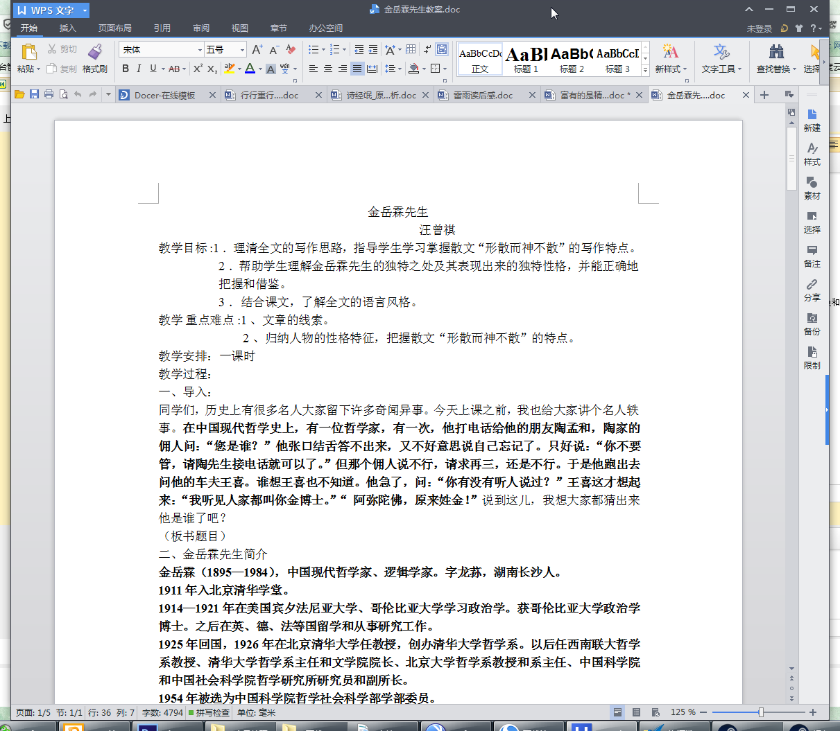 2 .帮助学生理解金岳霖先生的独特之处及其表现出来的独特性格,并能正确地把握和借鉴。