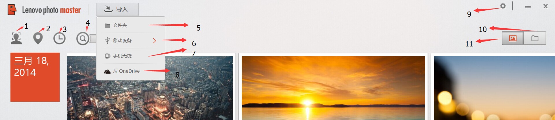 联想照片大师Lenovo Photo Master是由联想集团研发推出的本地照片管理软件。软件可以实现对图片库中的照片进行“人脸+地点+时间”的三维搜索,尽量帮助用户精准定位要找的照片。Win8系统还可实现语音搜索代替手动操作。同时,Photo Master自带对照片添加语音备注、生成视频故事、SNS分享及部分编辑美化功能。