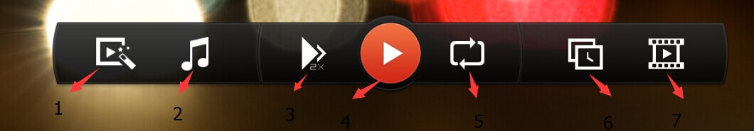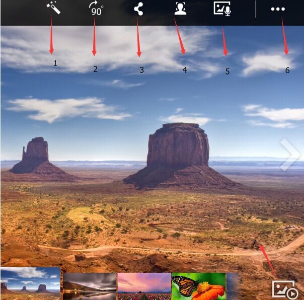 当照片以幻灯播放的时候点击任意一张照片会出现如下图选项: