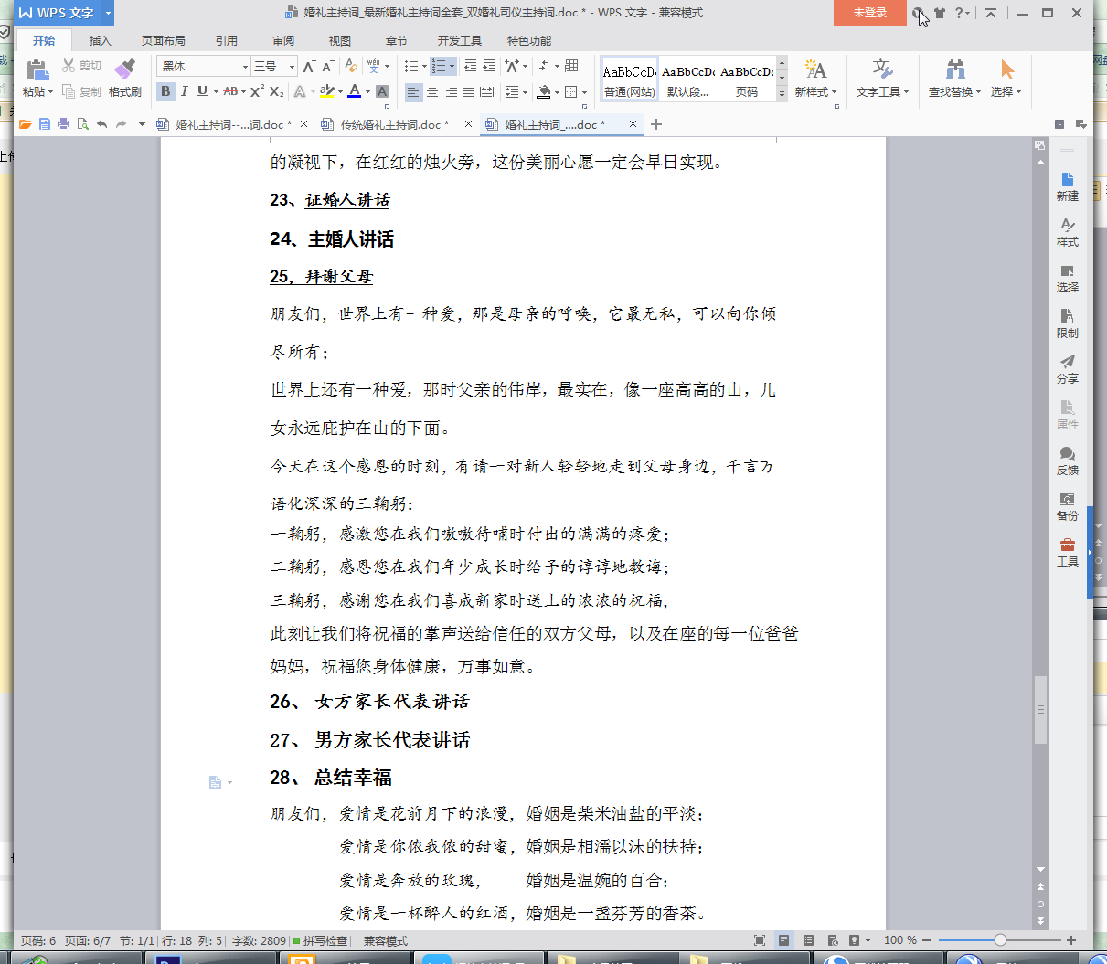 26、 女方家长代表讲话