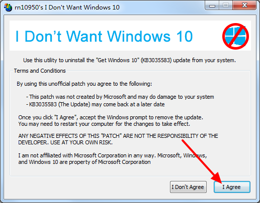 WIN10升级提示关闭工具I Dont Want Window10说明