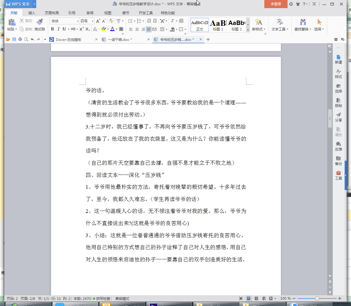 (抓住“焦急的目光”、“翻”、“摸”等关键的描写我神情和动作的词体会我对压岁钱的渴盼,并能感情朗读。爷爷之所以把压岁钱放在草窝里,是想让孩子明白:家里的日常生活能够维系,有老母鸡的功劳,要懂得感恩。)
