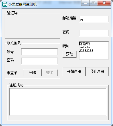 小黑爱拍注册机是一款小巧免费的爱拍账号注册软件,该软件非常简单,能够帮助用户获取到超多的爱拍小号,用户可以通过小号为爱拍刷点击率,喜欢的话可以来下载使用。