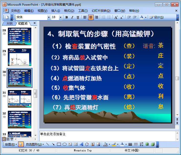 制取氧气是九年级化学“必修课”之一,那么氧气到底要如何来制取呢?或者说制取氧气需要什么样的条件呢?点击本文相应的下载地址进行下载后你将会获得一份免费完整版初中化学上册ppt之九年级化学制取氧气课件,它会为你做一个详细介绍的,感兴趣的朋友快来看看吧!
