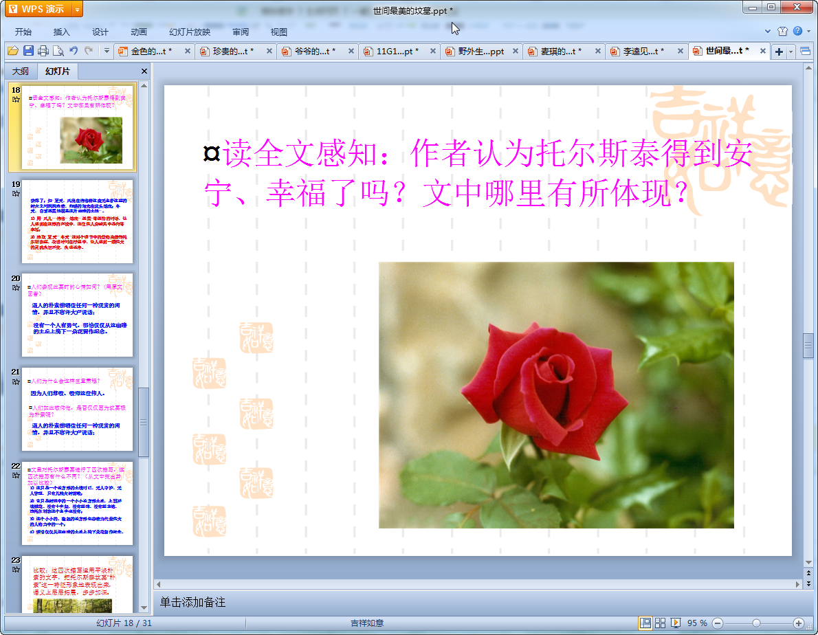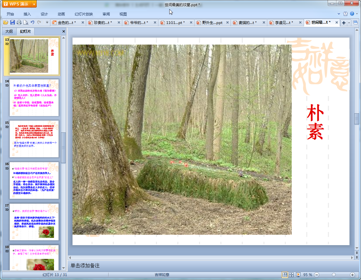 这是一篇北大师版九年级语文教学课件世间最美的坟墓ppt,该课件共有31页内容十分丰富,对文章中的各个重难点讲解的是分清楚,深受老师学生们的喜欢,有需要的朋友们可以来这边免费的下载使用!