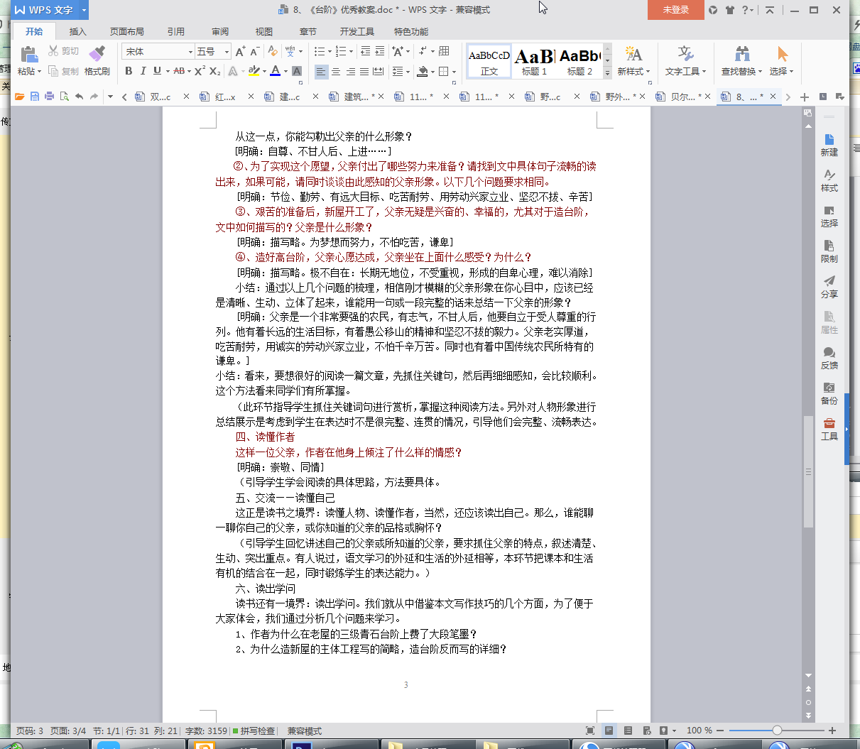 2、理解作品围绕台阶选材、安排详略等写法。
