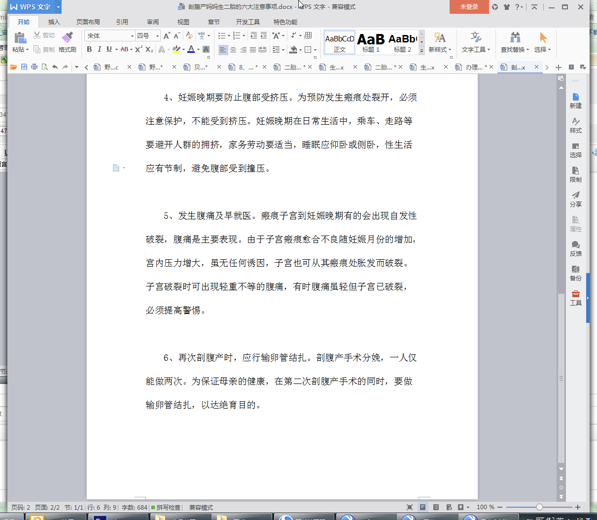 剖腹产妈妈生二胎的六大注意事项内容介绍
