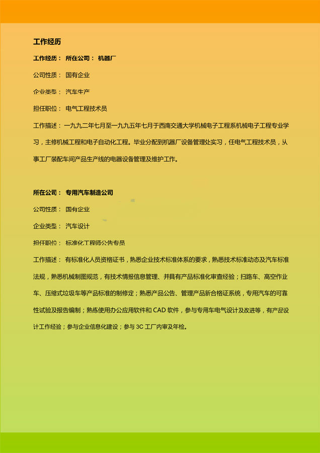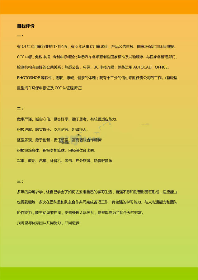 要当好一个专业的销售顾问,还是有很多地方要做的,但是当你应聘的时候,简历就非常重要了,因为现在一般都是网上投简历的。所以简历就是你的第一印象。今天东坡小编带来的这份汽车销售简历范文,非常的专业、标准。欢迎前来下载。