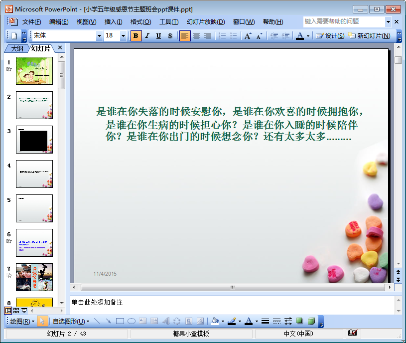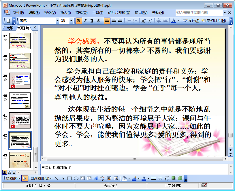 感恩节就要来了,小编在此特为大家整理带来了一份小学五年级感恩节主题班会ppt课件,希望能对大家有所帮助!该五年级感恩教育课件ppt图文并茂,内容十分全面完整,且极具教育性和引导性,如果你需要这份小学五年级感恩节主题班会ppt课件的话,只需轻轻点击本文相应的下载地址即可进行下载哦!