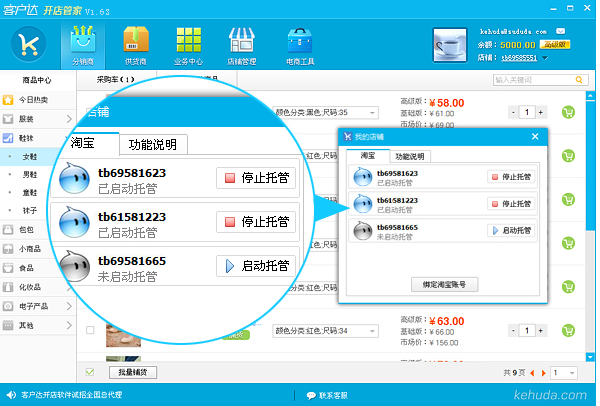 答:客户达独家批量处理功能,支持一键铺货;系统采用独立服务器,全自动极速铺货,再多商品也不怕,您只需轻轻点击一下鼠标,客户达瞬间帮您搞定。