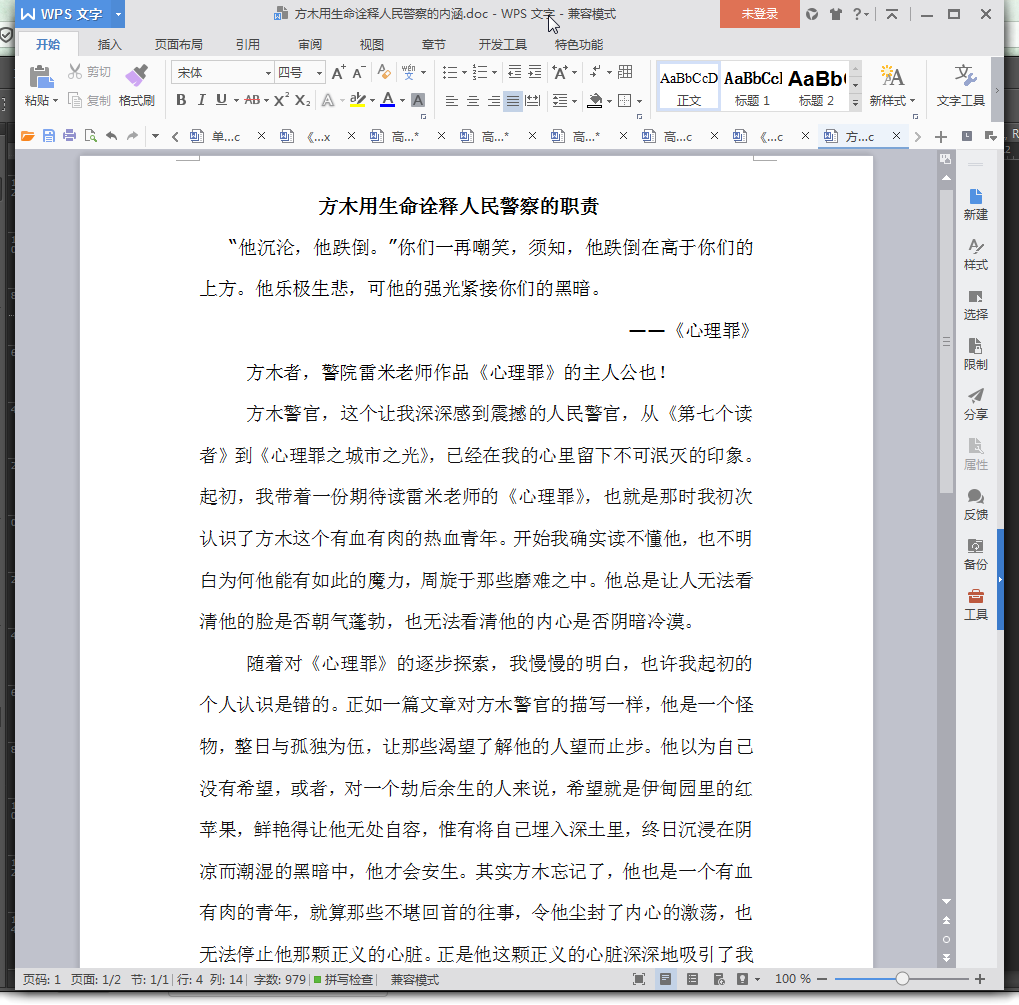 我是有东坡下载站编辑整理的方木用生命诠释人民警察的职责word文档。里面讲述了对作者笔下的方木精神的赞扬,那是一种不畏牺牲,不为 名誉,不为己私,不懈抗争的精神,想了解该精神的的朋友们可以来看看,我们为大家提供免费的下载!