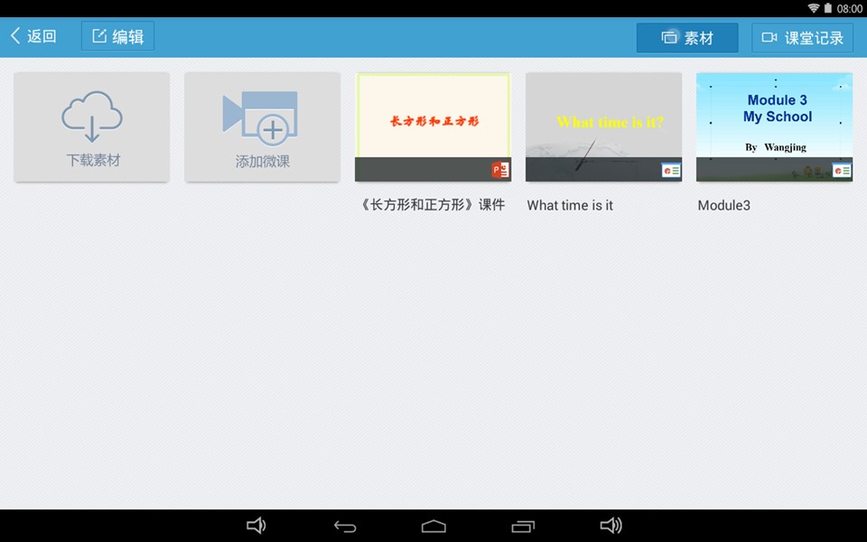 1、云课讲堂。您可以将本地PPT和交互式课件同传到教学机上,也可以通过个人空间备课和下载课件,进行课件教学。课件讲解过程中,可以录制视频和截取讲解快照。其中微课视频可以进行知识点、习题的挂接,形成微课习题包,并可以上传到个人云空间中进行共享。通过同步助手工具,您还可以方便地实现教学机教学资源管理,将视频和快照可以上传到本地PC机上浏览。