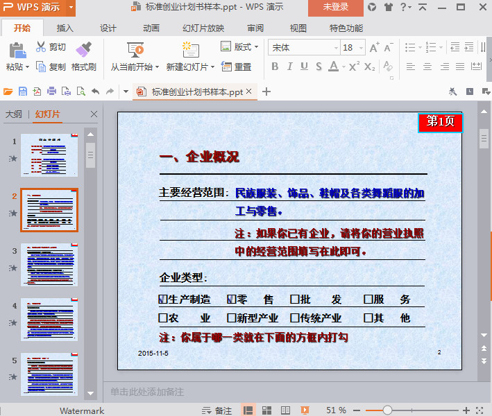 标准创业计划书ppt样本预览