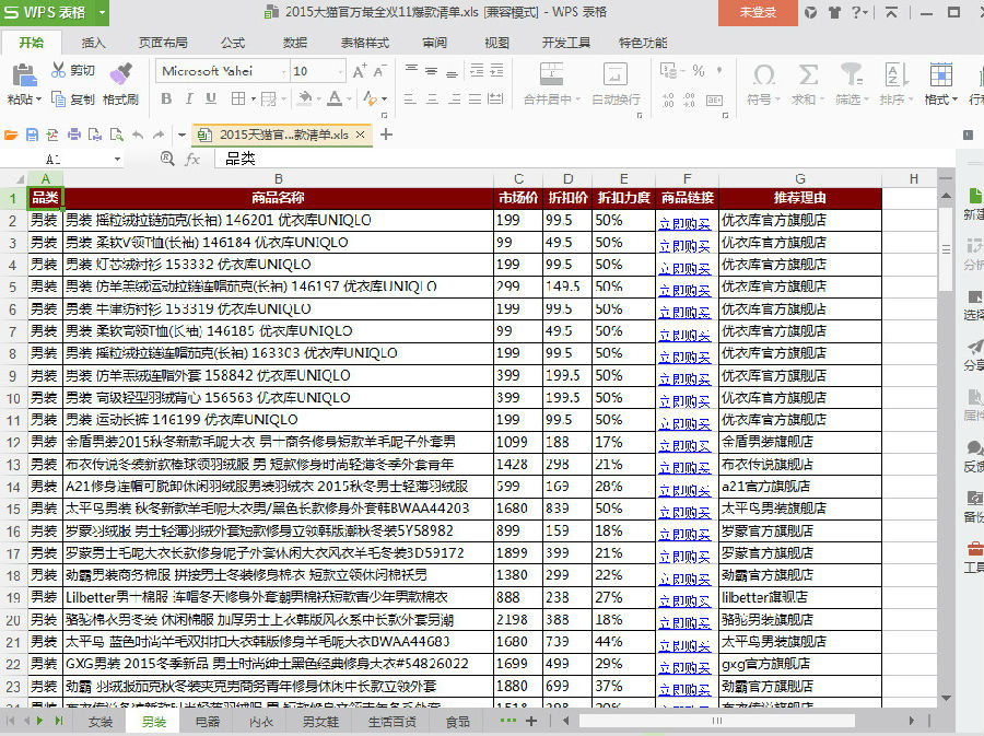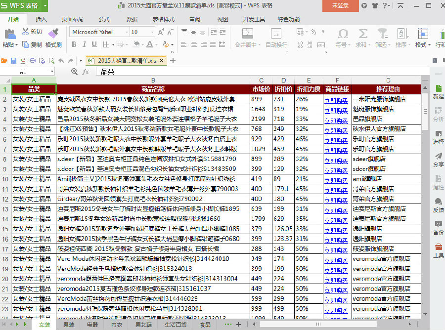 2015天猫官方最全双11爆款清单预览