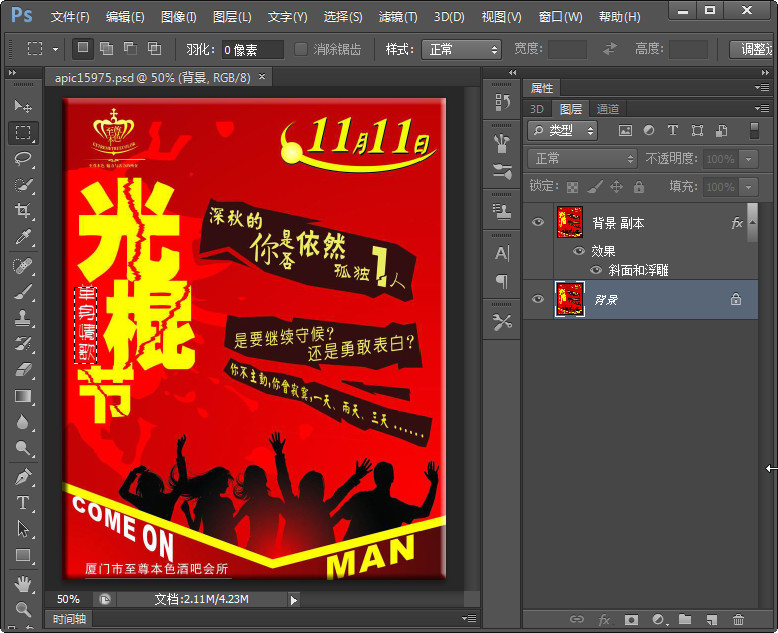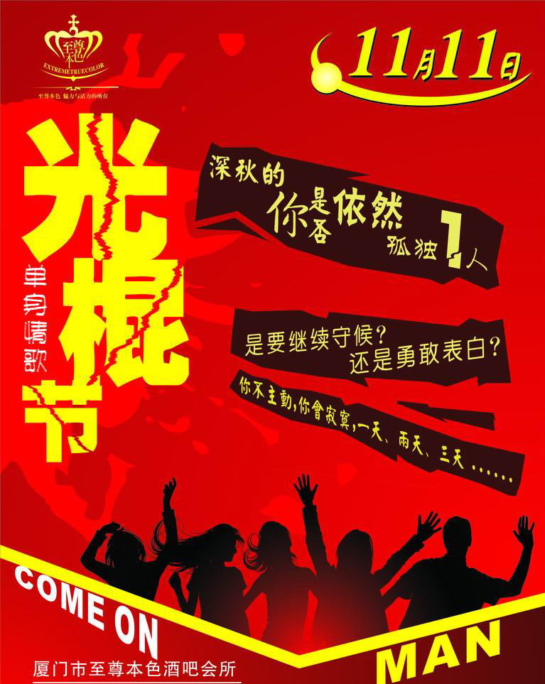 大家在如火如荼地开展双11的时候,千万不要忘记了还有光棍节吶。各位单身的屌丝们,可以为你心仪的对象做点什么啦。这份光棍节海报设计,非常的精美,欢迎前来东坡下载。
