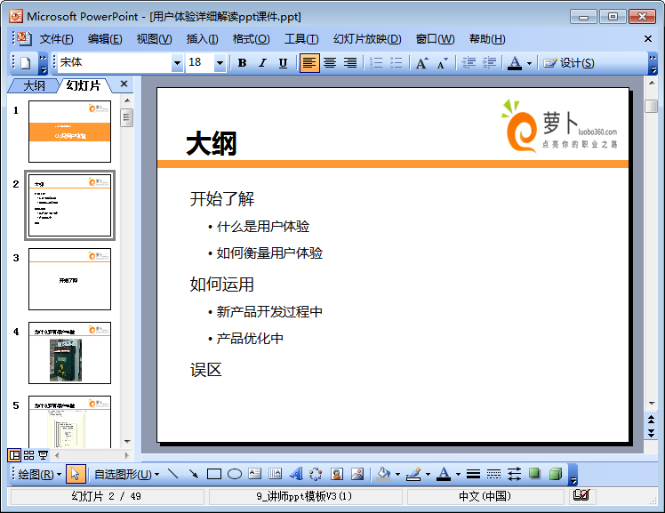 这份由49页组成的ppt课件就什么是用户体验、如何衡量用户体验、新产品开发过程中、产品优化中、误区等五大方面对“用户体验”进行了详细解读,正在探寻“什么是用户体验”这一问题的答案的朋友小编建议你千万不要错过了这份用户体验详细解读ppt课件,因为它一定会让你喜出望外的!