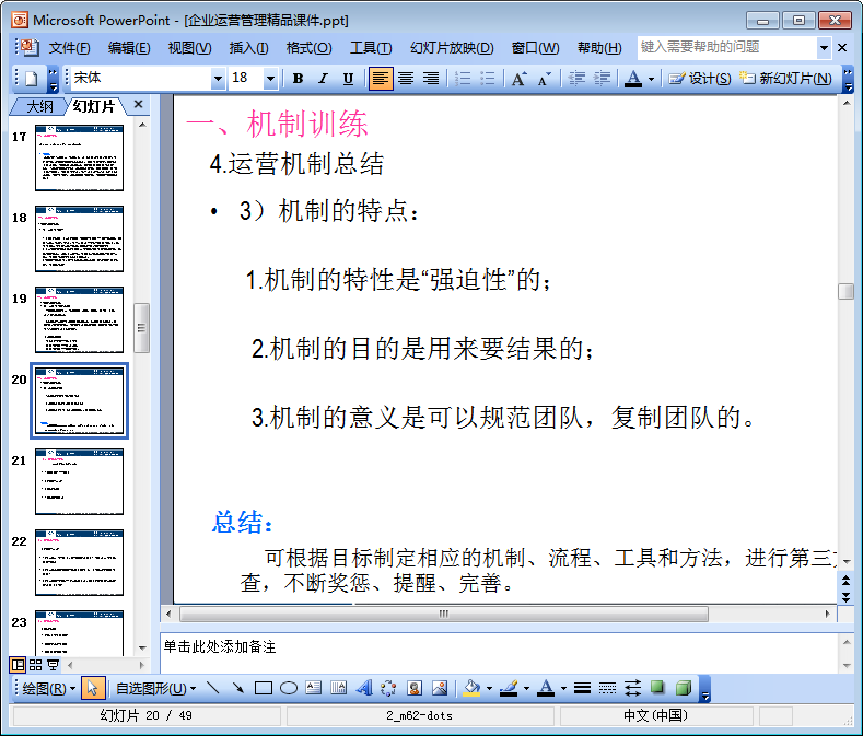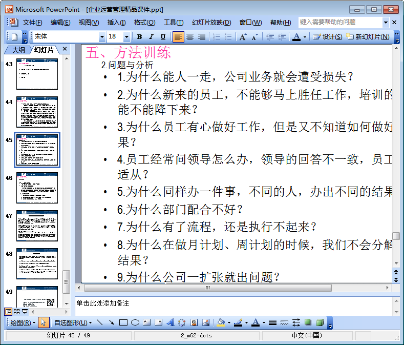 作为一名企业的leader,你是否经常在想为什么部门之间配合得不好?为什么员工有心做好工作,但是又不知道如何做好结果?为什么明明很多事情有了流程,但就是执行不起来?如果这些问题的确在烦扰着你,那么不妨来看看这份由49页组成的企业运营管理精品课件(以下简称为企业运营管理ppt)吧!相信其中的内容不会让你失望的!