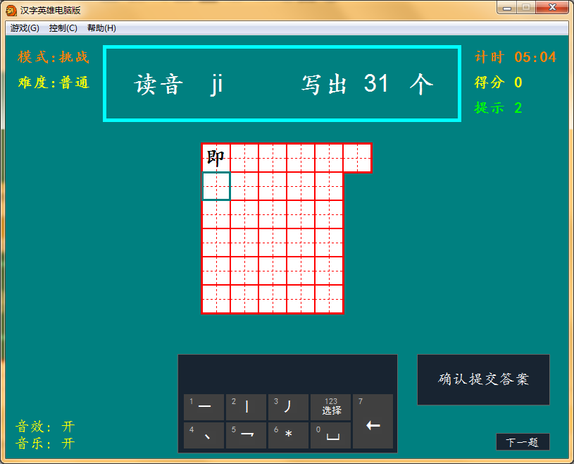 下方的笔画有点坑,有时候想到一些字,却打不出来...这个是挑战模式