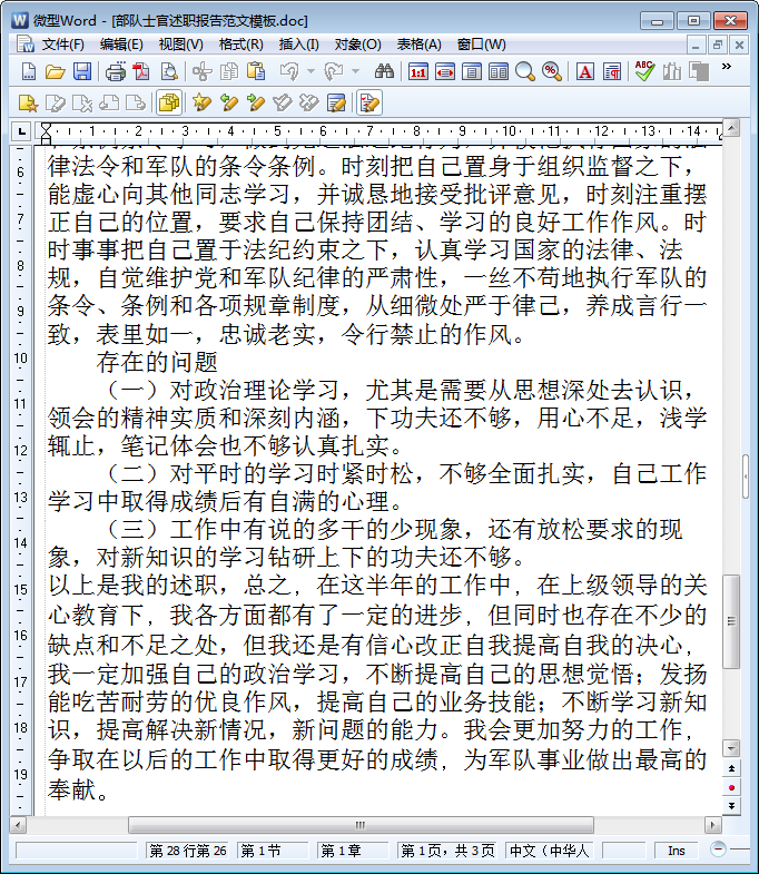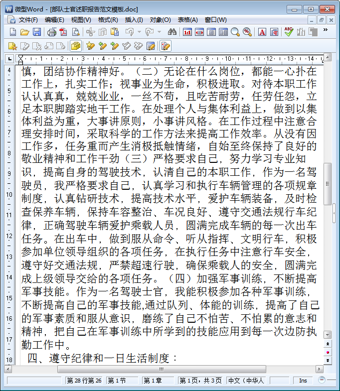 部队士官述职报告内容截图